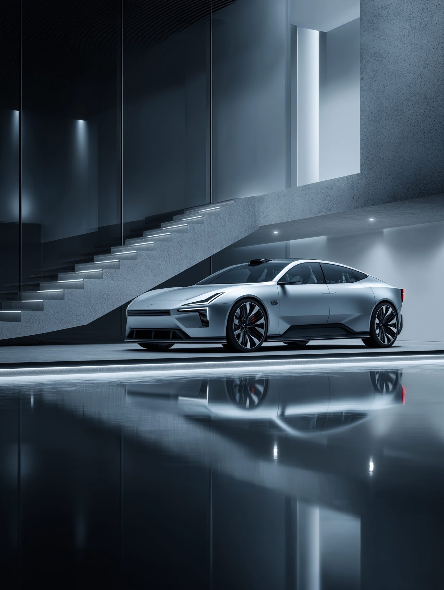 A cinematic exploration of the connection between human presence and machine form. Through abstract aluminum energy, a divine entity awakens the material essence of the Polestar 5 — transforming pure motion into emotion.