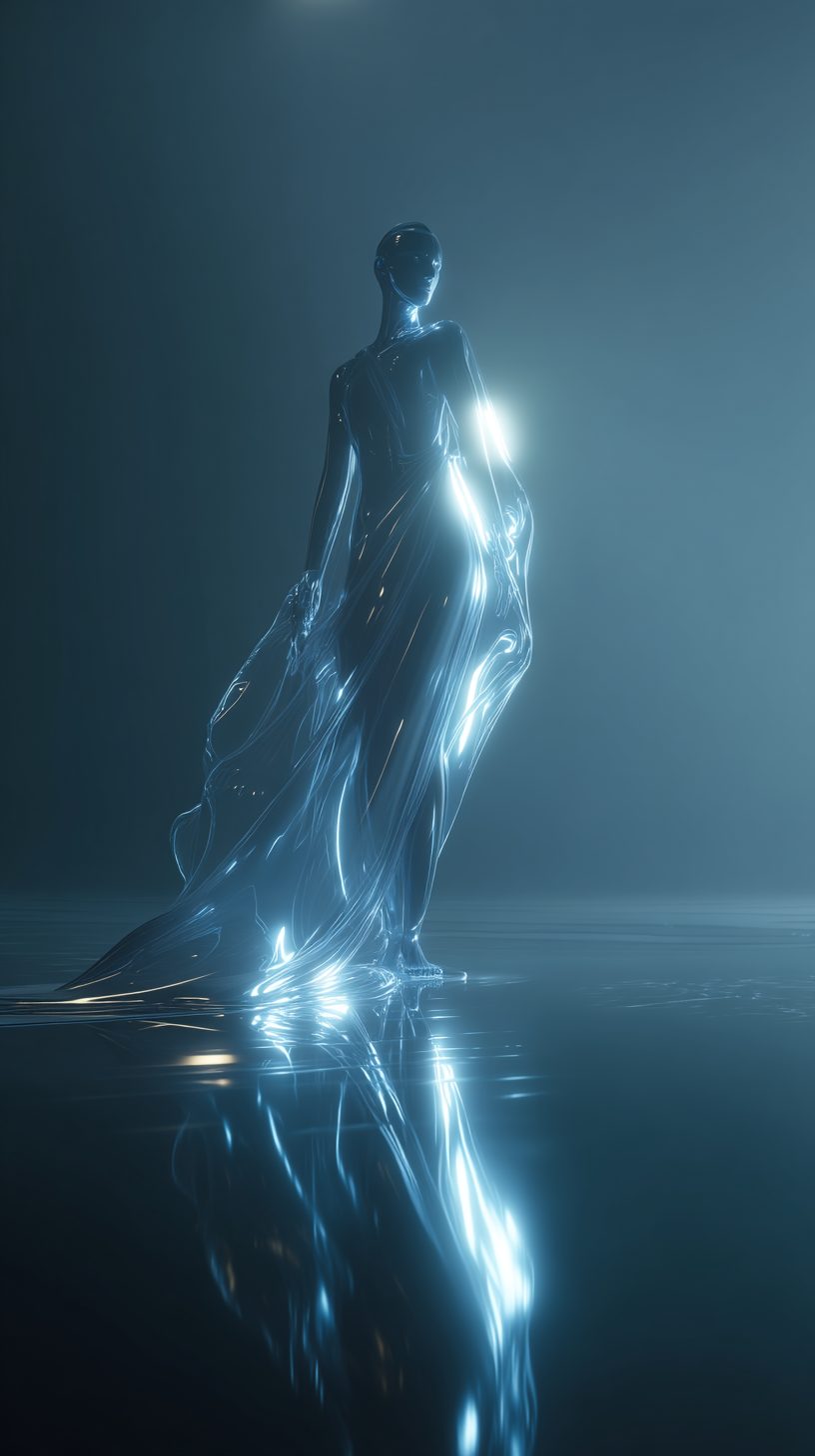 The mystical material that forms the goddess. Generated using AI image systems and stylized through editing.